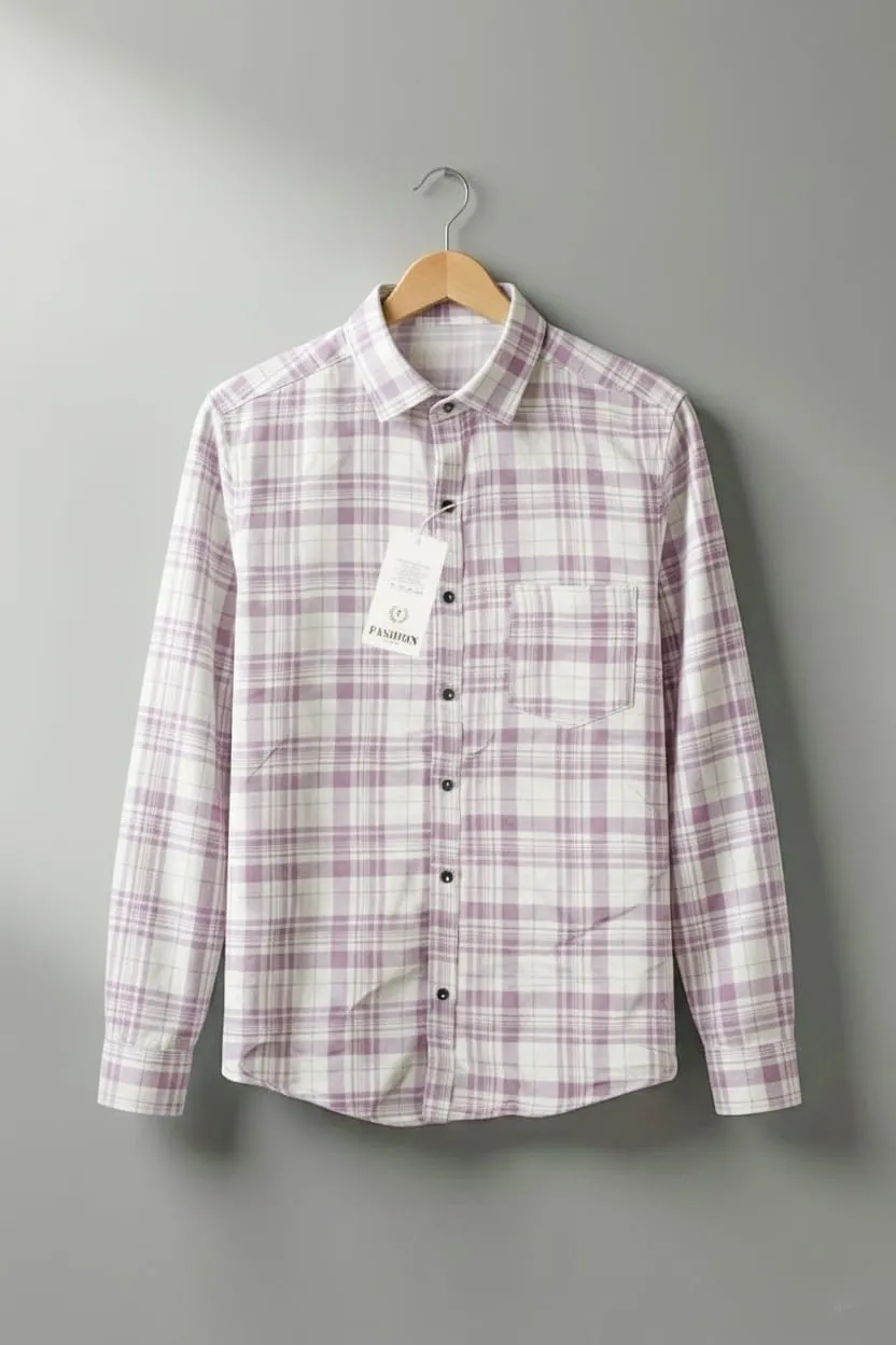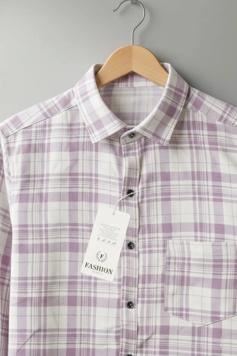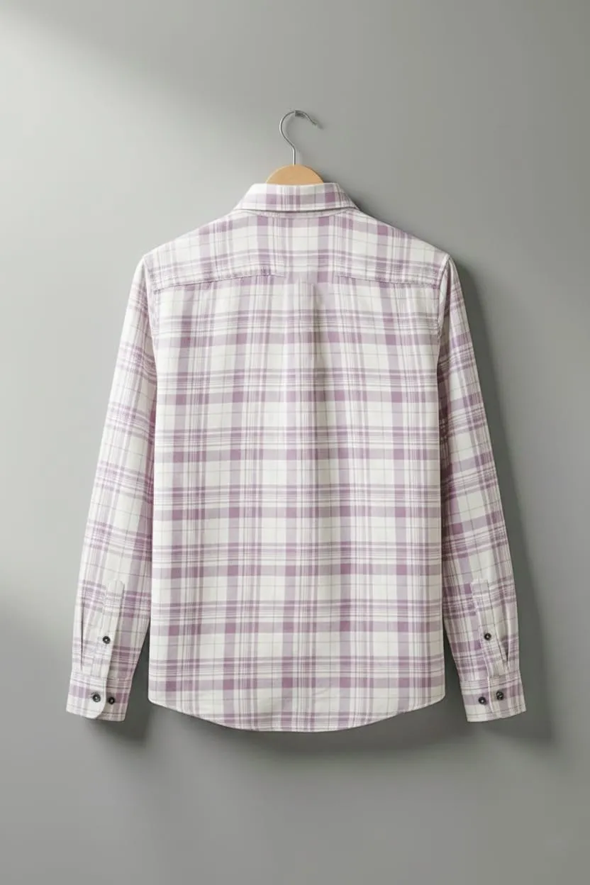 Add a subtle and stylish touch to your wardrobe with this Light Purple Checked Full Sleeve Casual Shirt for men.