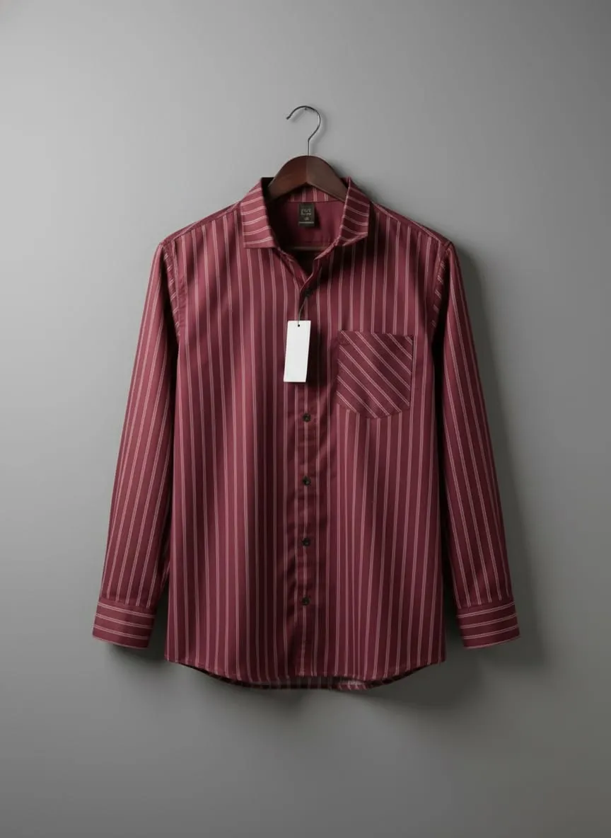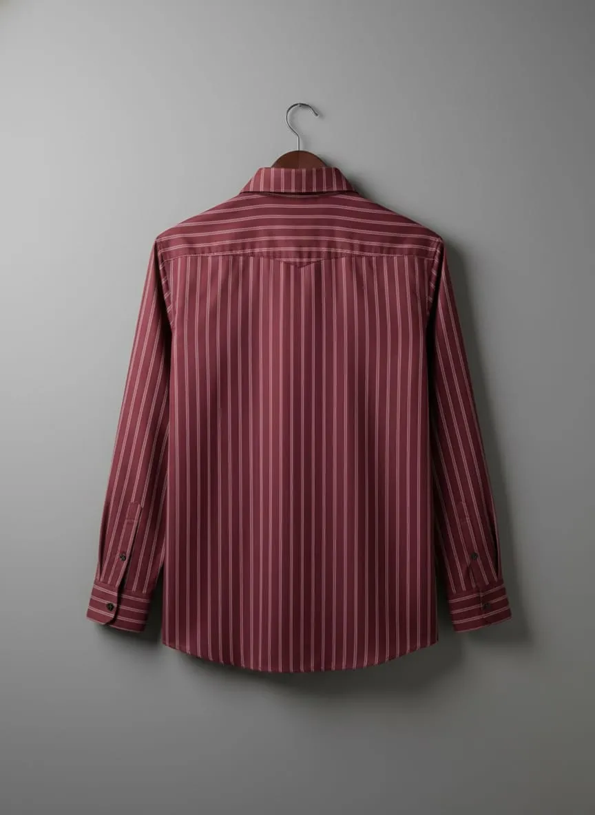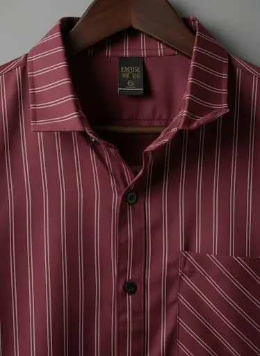 Experience a blend of luxury and sophistication with this maroon striped polyester shirt — a must-have for every stylish man.