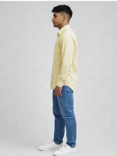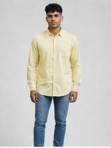 Oxford shirt fabric is a medium-weight cotton fabric woven in a basket weave pattern, giving it a slightly textured, durable feel. It’s breathable, sturdy, and softens over time, making it ideal for casual and smart-casual button-down shirts